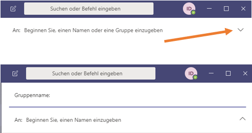 das Drop-down Menu öffnen und direkt den Gruppennamen erstellen und Teilnehmer hinzufügen.