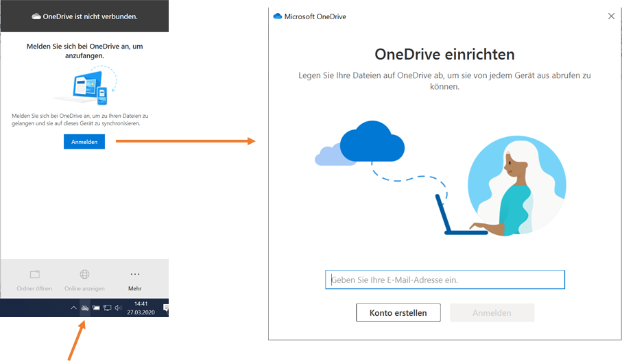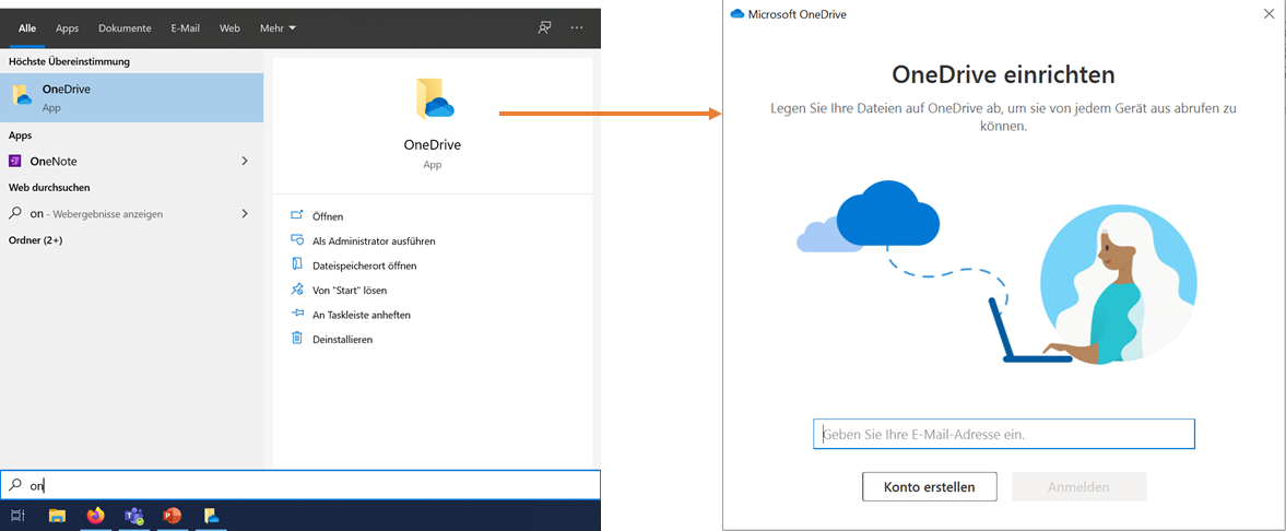 Es gibt diverse Möglichkeiten sich in OneDrive anzumelden. im Folgenden werden 2 Varianten vorgestellt.