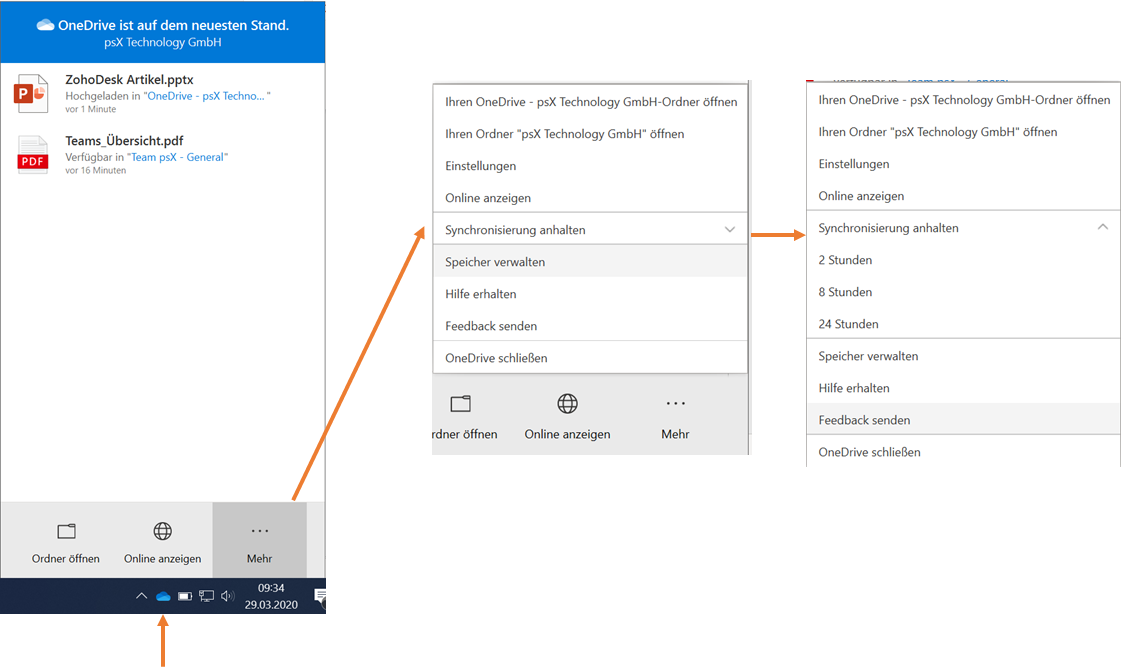Über die "kleinen Wölkchen" in der Taskleiste lassen sich Synchronisationsoptionen verändern.