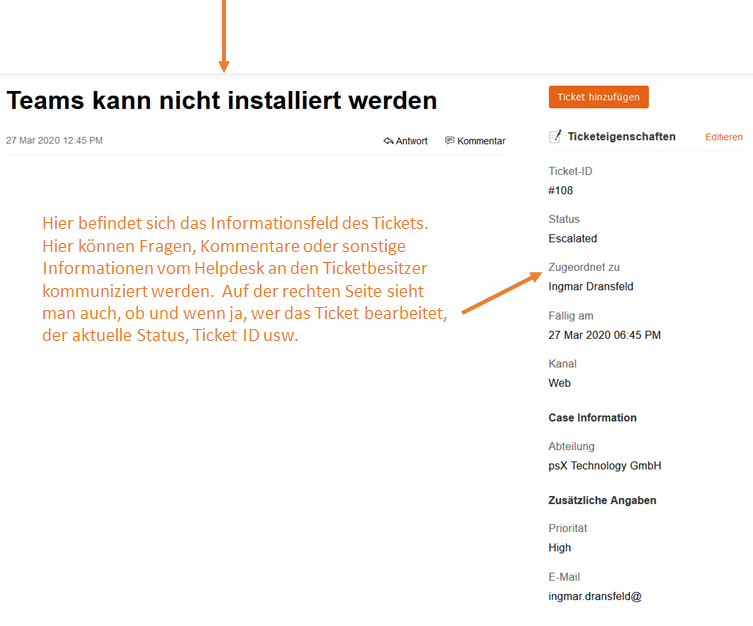 direkt an den PSX Helpdesk gesendet werden. Eine Statusabfrage ist dann aber nicht möglich.