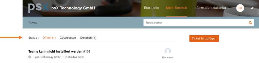 neues Ticket zu eröffnen. Wollt ihr später den Status Eures Tickets
